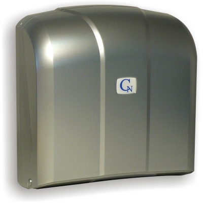 Nástenný zásobník na papierové uteráky "ZZ" v rozmere 23x25 cm, prípadne univerzálny aj pre iné rozmery a sklady. Vyrobený je zo strieborne pokovovaného plastu. Má elegantný vzhľad a pri malých rozmeroch je schopný pojať až 400 ks uterákov.